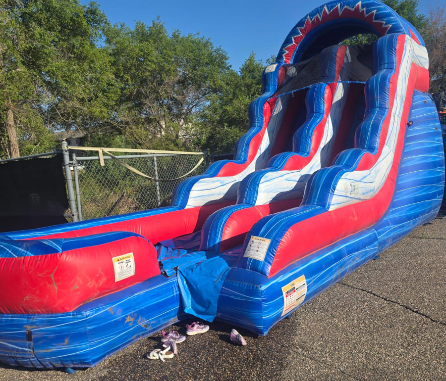 This inflatable 16ft wet or dry backyard slide the perfect inflatable slide for your party (birthday, graduation, celebration, summer barbeque, etc) This slide can be used as a wet slide with the included sprinkler hose.